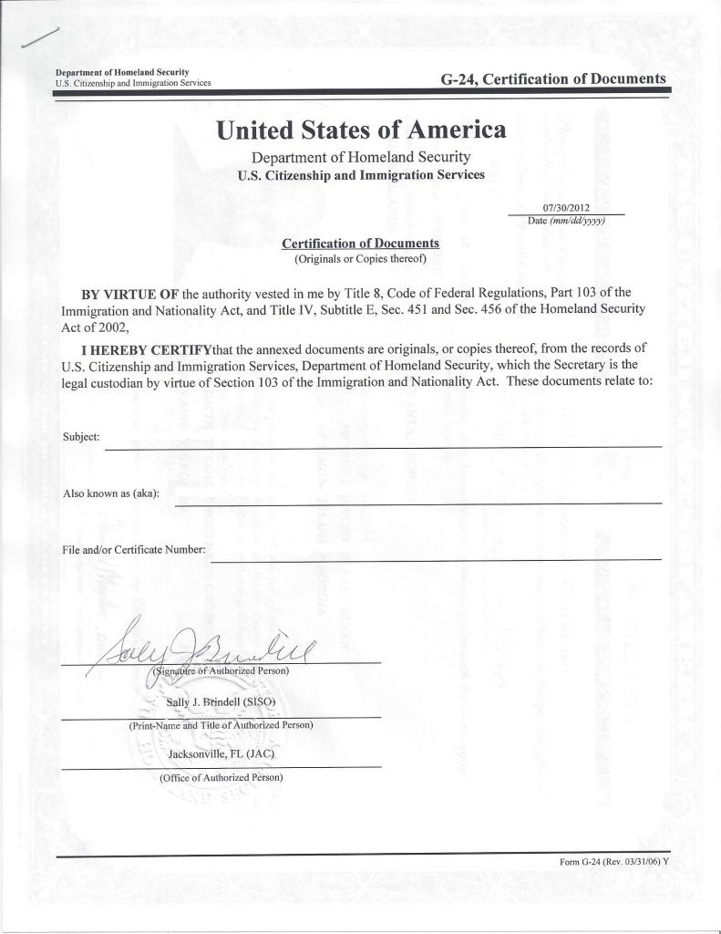 Voor iedereen die problemen heeft met het certificeren van een kopie van je naturalisatie document hier is de link naar mijn G-24: