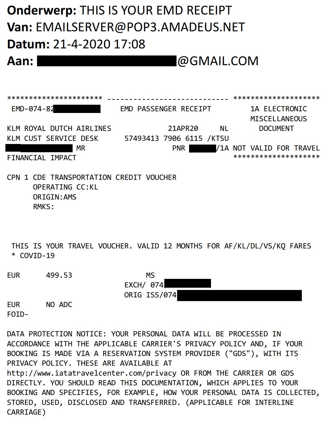 Jij blijft hangen in dat je zo gelukkig bent met KLM en dat hun voucher een geweldige oplossing is, maar dat is niet voor iedereen zo.