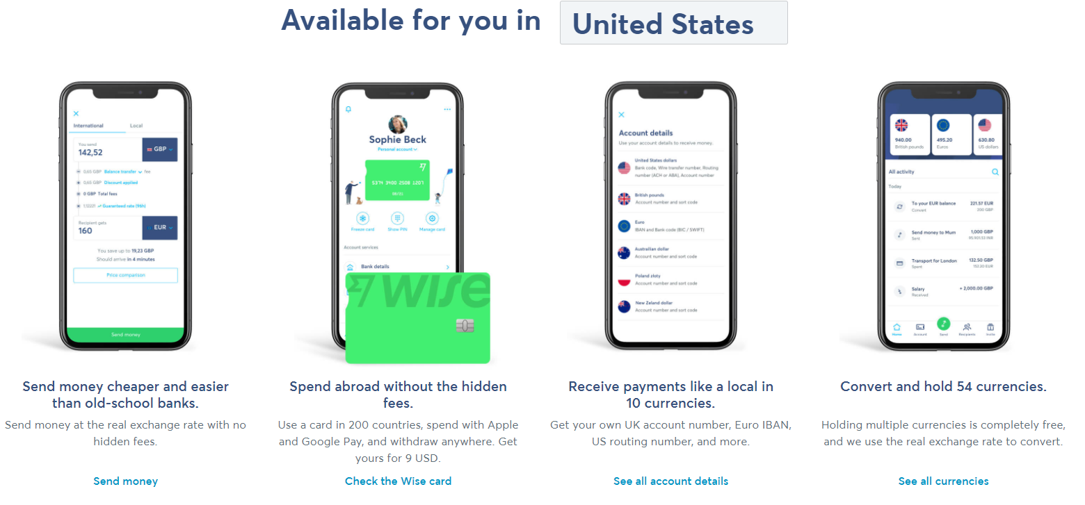 Ik heb het even met een VPN geprobeerd, je kunt een Wise account met card openen als je in de VS woont: