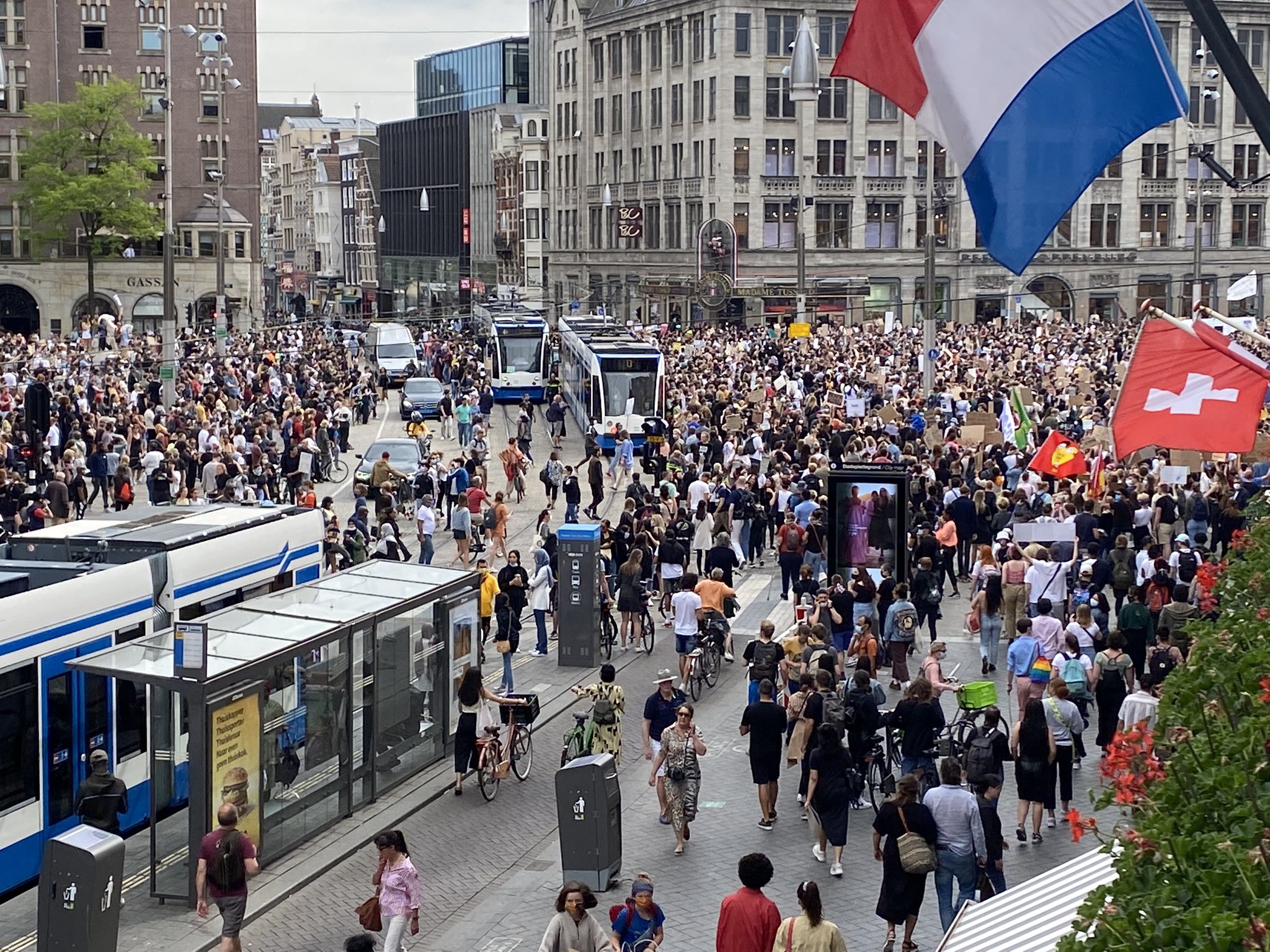 Live view momenteel op De Dam, Amsterdam bij demonstraties... elders in het land; overvolle terrassen en natuurgebieden. Als er over 2 weken geen piek hierdoor is? geef mij dan maar gewoon een retourtje USA hoor...
