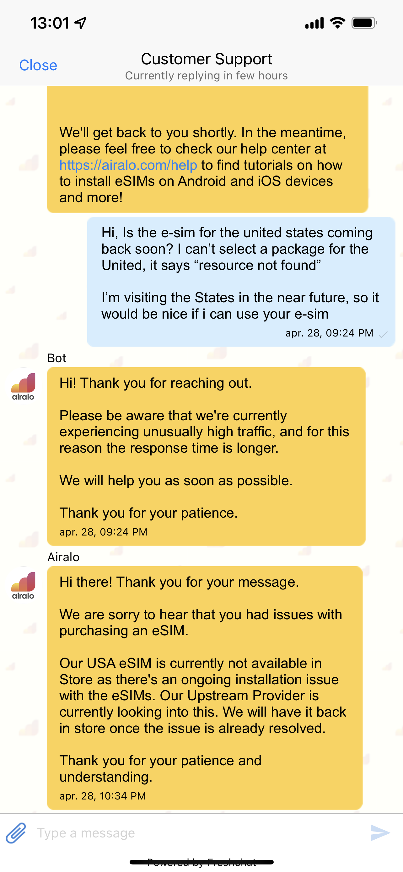 Ik heb toen even contact gezocht met airalo en snel antwoord: