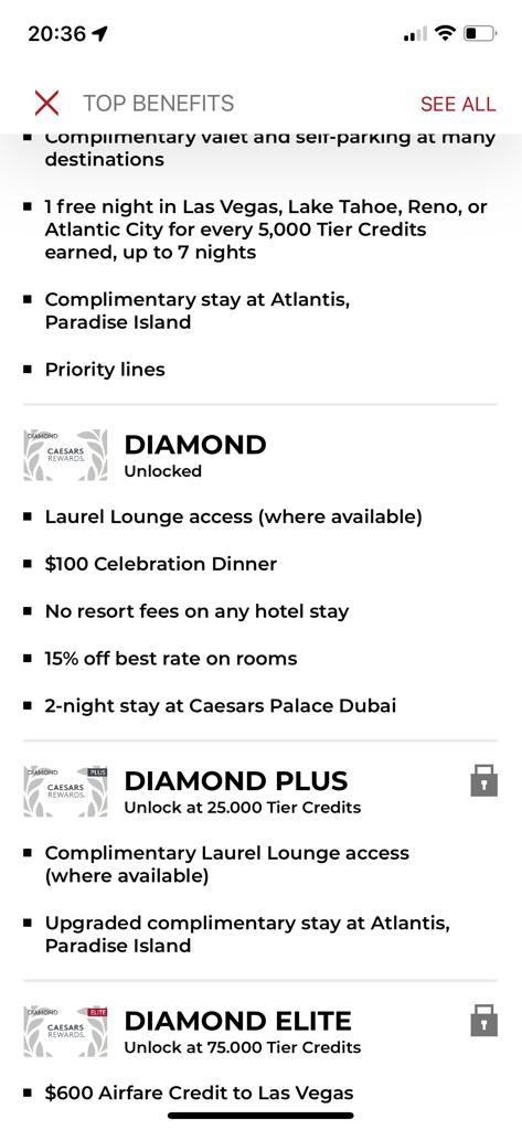 Ik heb overigens ook al verhalen gelezen dat de rewards desk zegt dat je 100 tier moet hebben maar dat als je het bij een restaurant vraagt om te controleren het er gewoon opstaat.