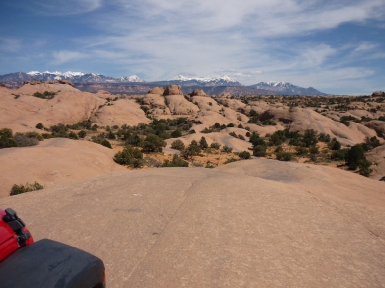 Op reis van Grand Rapids, Mi naar Las Vegas kom je door Utah en langs Moab. Een schitterend gebied met grote woestijnen waar je gigantisch mooit kunt rijden. Met mijn oude Lincoln veel dirt roads gereden. Toevallig komen we door Moab en zien een verhuurbedrijf voor Jeeps. Zo maar eens gevraagd of je zelf mocht rijden en of je ook off-road mocht, nou daar zijn ze voor. We waren verbaasd dat we een complete map met een stuk of 20 off the road routes kregen. Toen we de man vertelde dat we wel vaker off road gereden hadden adviseerde hij ons een Jeep Rubicon te nemen, (met sperren en speciale banden) en de rode route te rijden. Nou, ik kan jullie zeggen dat dat echt terreinrijden is.