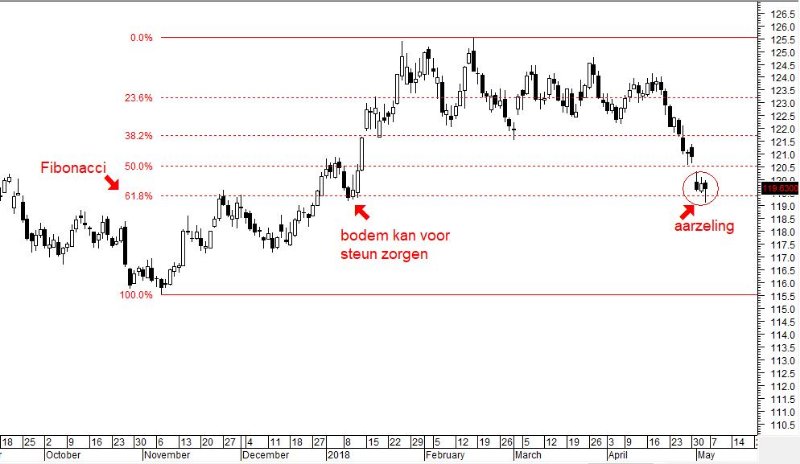 Stijgingen en dalingen verlopen gewoonlijk niet in een rechte lijn. Technisch gezien bevindt de koers zich op een niveau waarop een kort herstel in zou kunnen treden. In de weekgrafiek bevindt de koers zich op het niveau van het 40-weeks voortschrijdend gemiddelde, dat vaak voor steun zorgt en in de daggrafiek kan de bodem van begin januari voor steun zorgen. Bovendien bevindt de koers zich op een Fibonacci steunniveau. De laatste drie dagen zien we dan ook een aarzeling in de daling. Dat maakt een herstel op korte termijn mogelijk, maar dat is niet gegarandeerd. Niet voor niets geldt in beurskringen: never try to catch a falling knife.