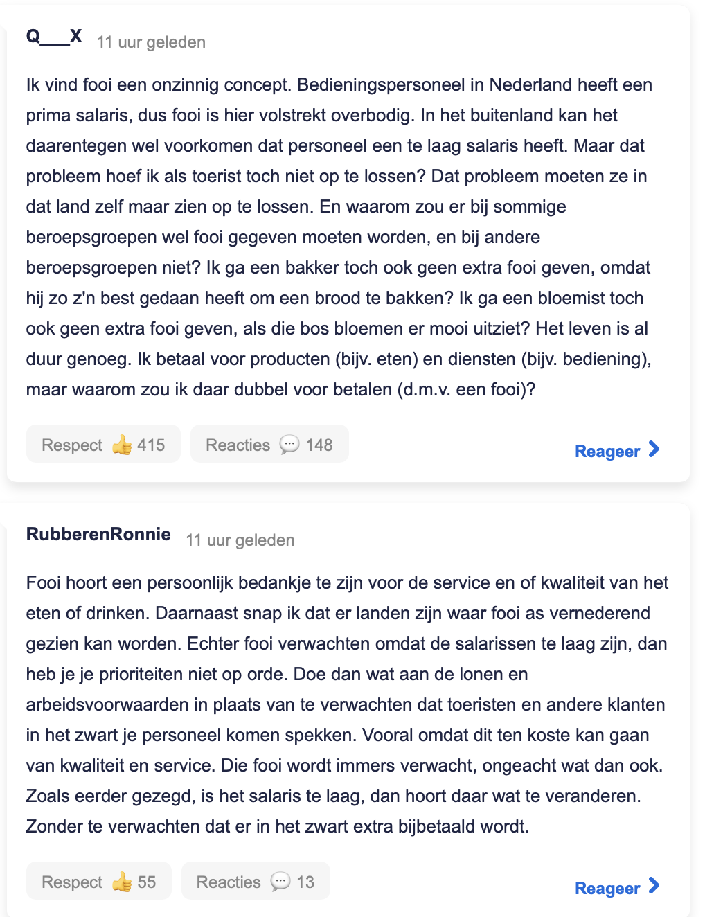 De moeilijkheid zit hem voor mij in situaties waar sommigen tippen en andere niet. Als niemand tipt, en het is niet gebruikelijk om er te tippen, dan doe ik het ook niet (tenzij er iets gebeurd, bijvoorbeeld iemand die echt iets voor ons doet dat niet ‘gebruikelijk’ is).