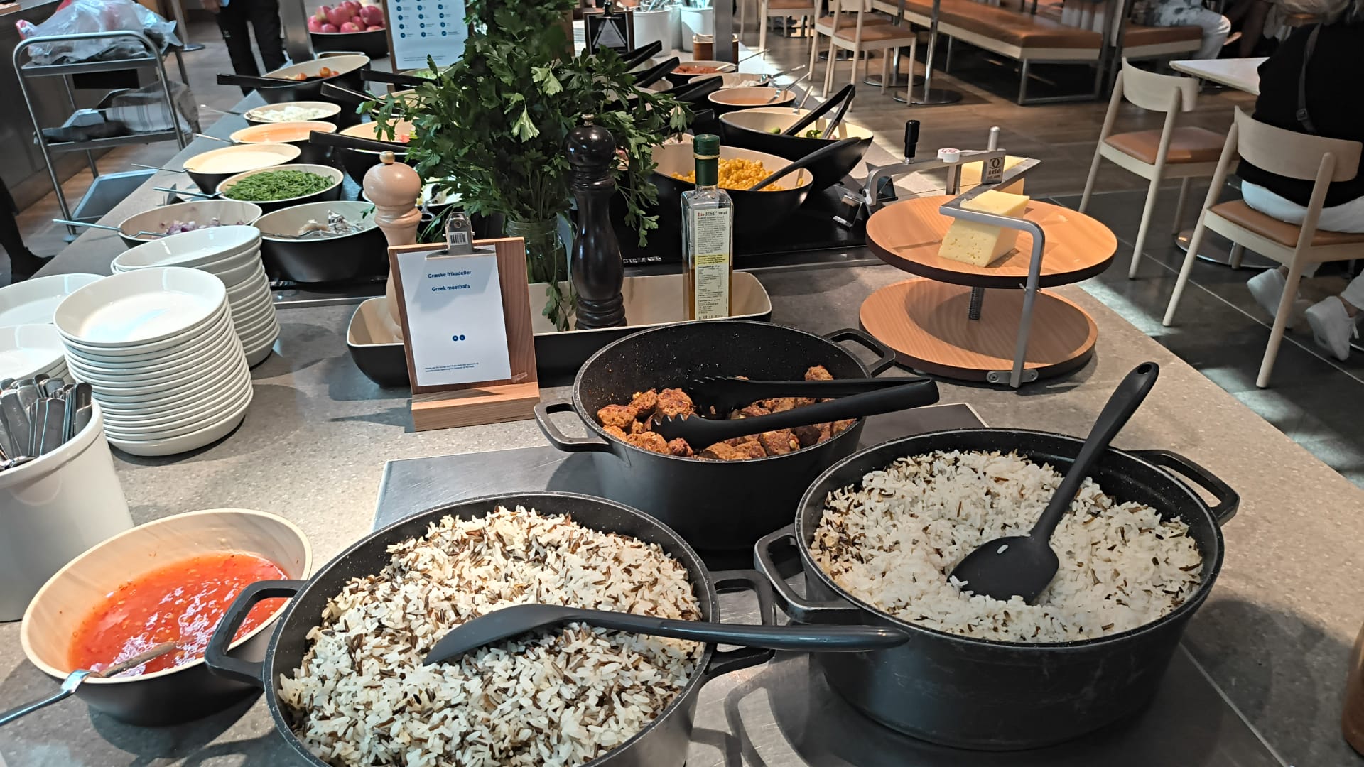 Het eten is kwalitatief prima , zeker als je het vergelijkt met wat KLM aanbiedt op Schiphol.