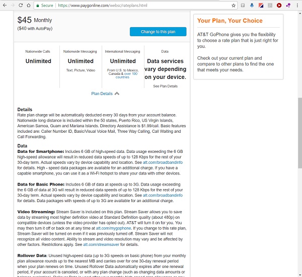 - Optie 3: switchen naar het .25ct/minute plan en direct terugswitchen naar het $45 plan. Dit kost je dan opnieuw $45. Hiermee start dan een nieuwe periode van 30 dagen met 6GB full speed data.