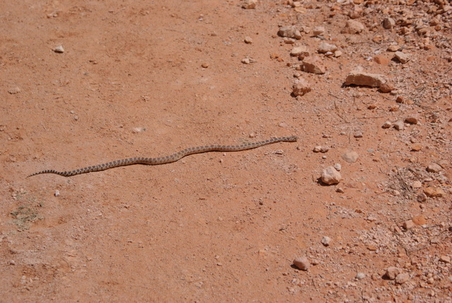 Ik ben dus zo iemand die overal slangen tegenkomt. En andere enge beesten. Eind juni ben ik door een Black Widow gebeten en heb nog steeds af en toe pijn in m'n arm. Oh en dan heb ik nog niet eens over de schorpioenen verteld! Die krengen komen dus ook altijd binnen bij m'n schoonouders. Liep ik de badkamer in om te douchen en moest meteen omkeren om m'n cowboylaarzen te pakken om een schorpioen plat te stampen. (note to self: always keep boots on untill last moment) Oh, nu snap ik waarom die cowgirls op die posters wel hun laarzen aanhouden als de rest van hun kleding al verdwenen is