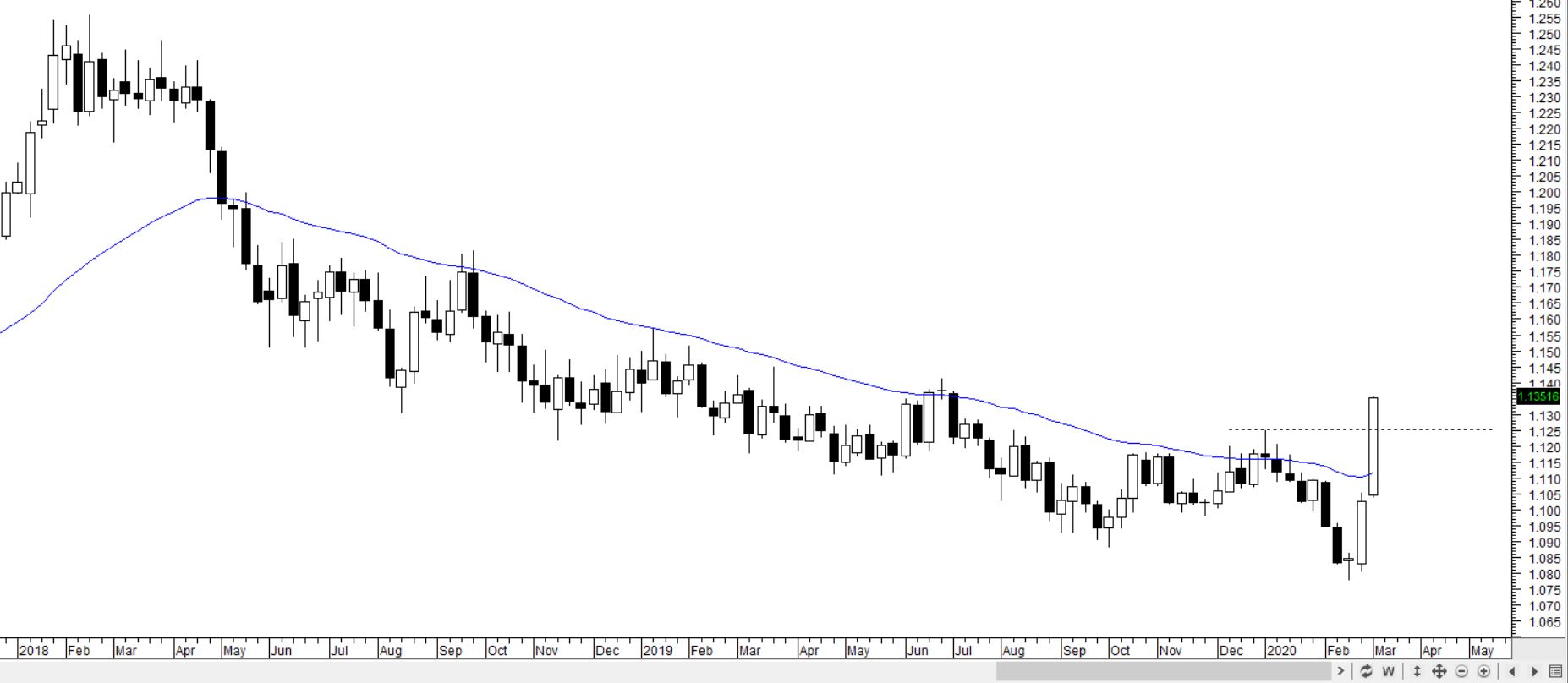 1) De koers moet boven het laagste dieptepunt rond 1,08 een hogere bodem vormen.