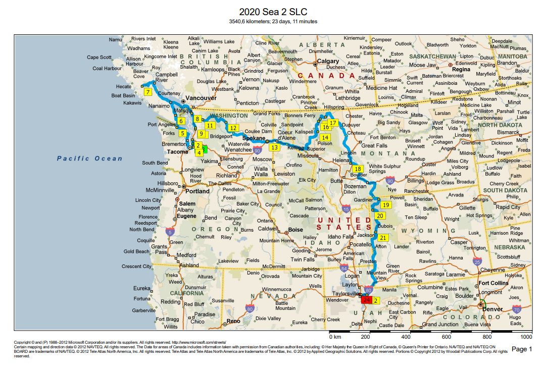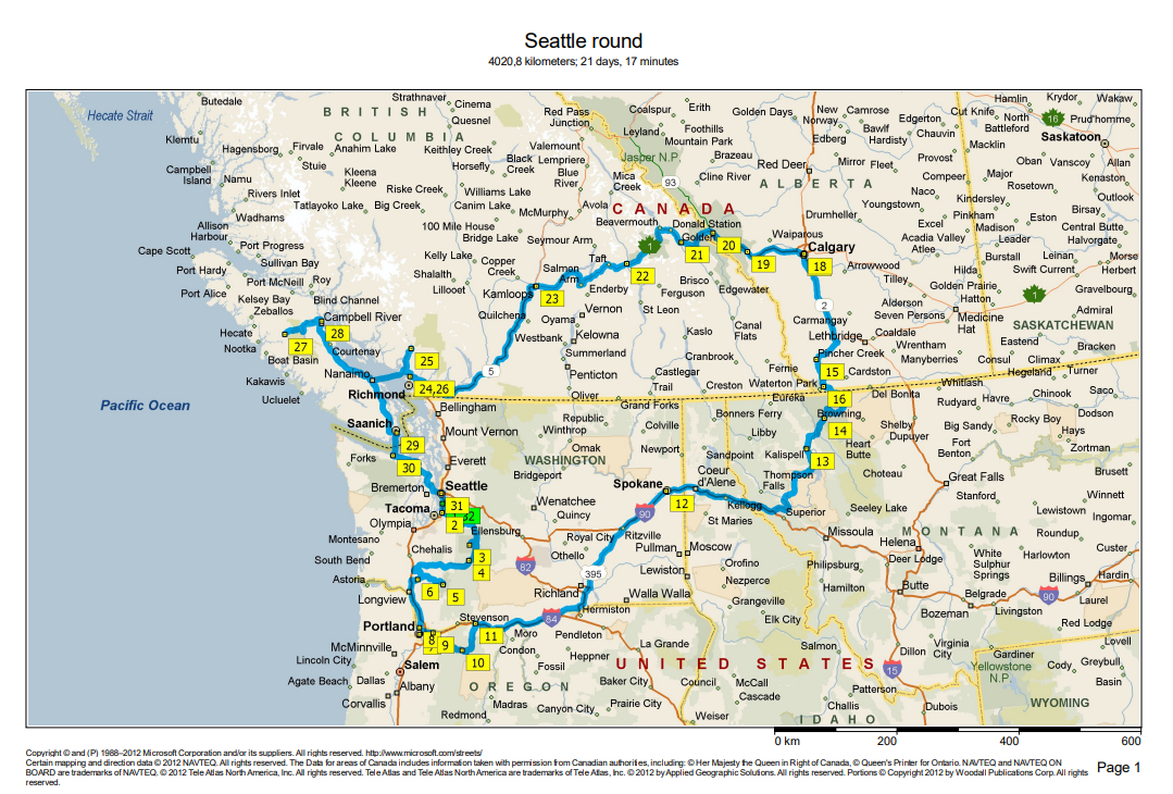 we denken dus ook in de richting die hier wordt voorgesteld, namelijk van Denver naar Seattle. Hierboven wordt voorgesteld om het te combineren met een stukje Canada (Vancouver en Vancouver Island, alsook de route tot Calgary interesseren ons wel).
