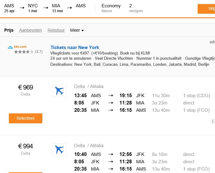 We willen vliegen op Orlando (lees goedkoper en centraal) om vervolgens omhoog te rijden richting NY om vanuit NY naar Miami te gaan..?!