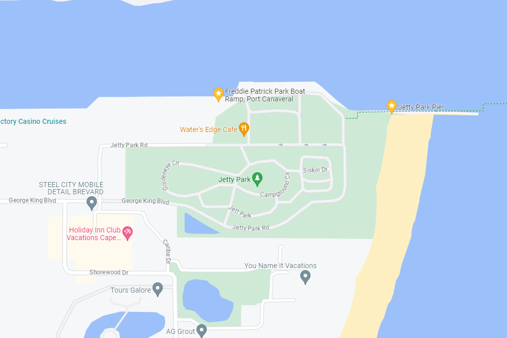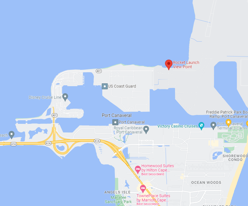 Mocht je een lancering hebben op de lager gelegen pads is dit een prima locatie om te kijken, je hebt veel winkels en eettentjes in de buurt en gezien de lancering vaak plaats vinden is het er ook niet heel druk. Vlakbij heb je de Jetty Pier met een strand waar je de hele dag lekker kunt uitwaaien op het strand waarna je de auto vlakbij de pier kunt parkeren (is voor personeel en dropoff voor de boten, maar je mag er gewoon staan. Wordt ook gevist).