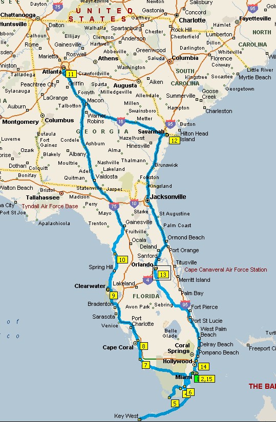 Een dag van Miami verschoven naar het einde van de reis .i.v.m. de dagen in Orlando. Dan gulf coast iets ingekort.
