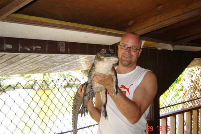 Jeetje wat was dat een verschrikkelijke gaaf gezicht daar, zoveel alligators, schildpadden, van die grote "roofvogels"en die bleven ook nog eens zitten (niets voor mij) terwijl Dennis een heftige bloedneus kreeg en dus nog al wat bloed verloor dat ik dat we er helemaal waren geweest :wink:
