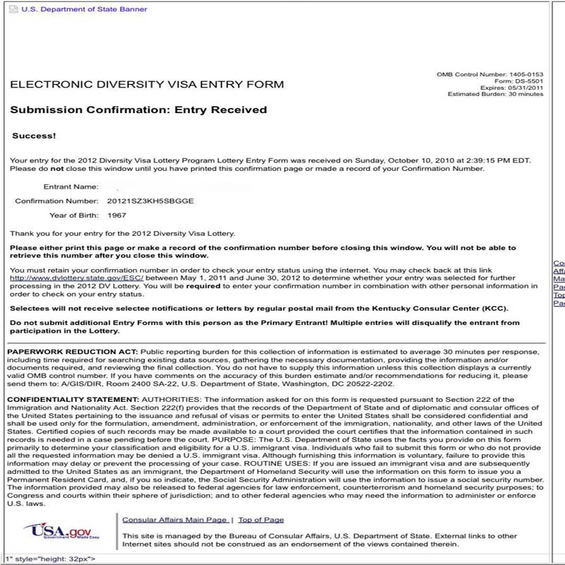 Waarom zou zijn confirmation nummer onzin zijn? Ik heb me via de normale weg ingeschreven (dvlottery.state.gov) en mijn confirmation nummer was 20121SGAKLBA1XXX (ik heb de laatste 2 digits aangepast, weet niet of je je nummer openbaar mag maken). Dus dat ziet er een correct nummer uit.Sten schreef:Oh dat zegt alles: dat is een totaal onzin nummer, je bent dus inderdaad opgelicht.![]()