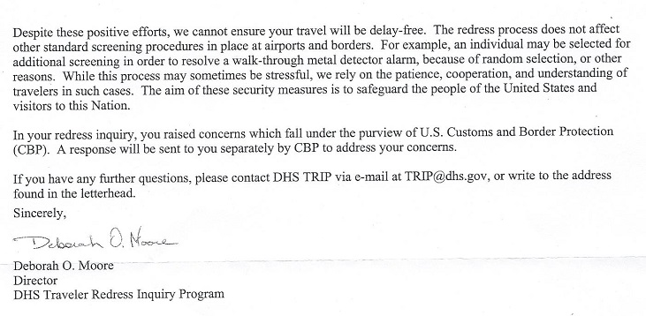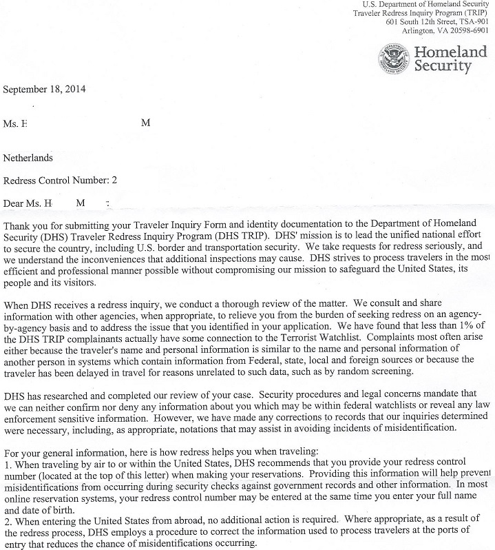 Deze is van de DHS TRIP afdeling. Waar ik het verzoek had ingediend waarom mijn Esta gewijzigd was in "reizen niet toegestaan".