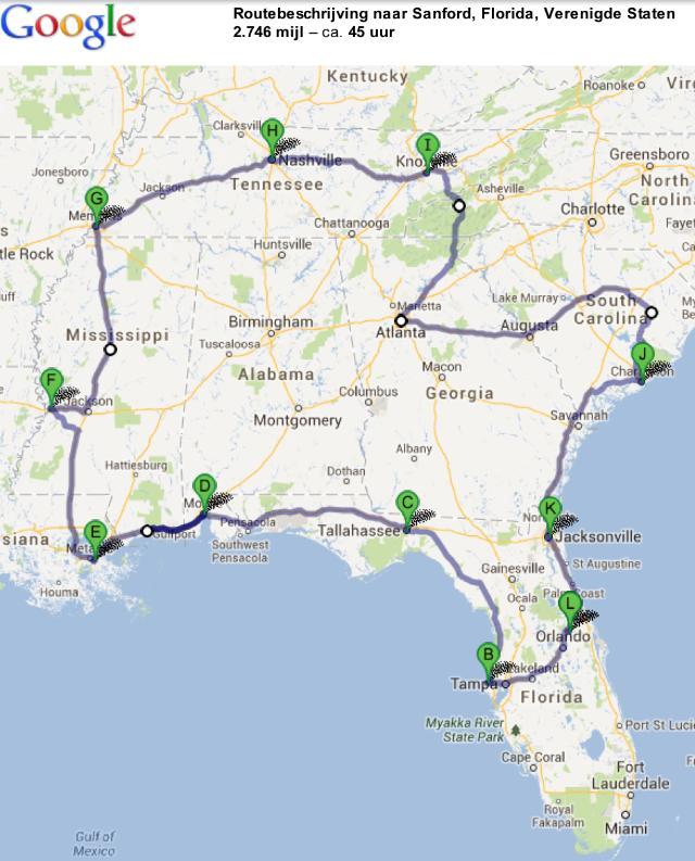 Wij beginnen ook in Atlanta en eindigen in Miami zodat we wat meer tijd hebben en Smokey mountains niet zo ver uit de route is.