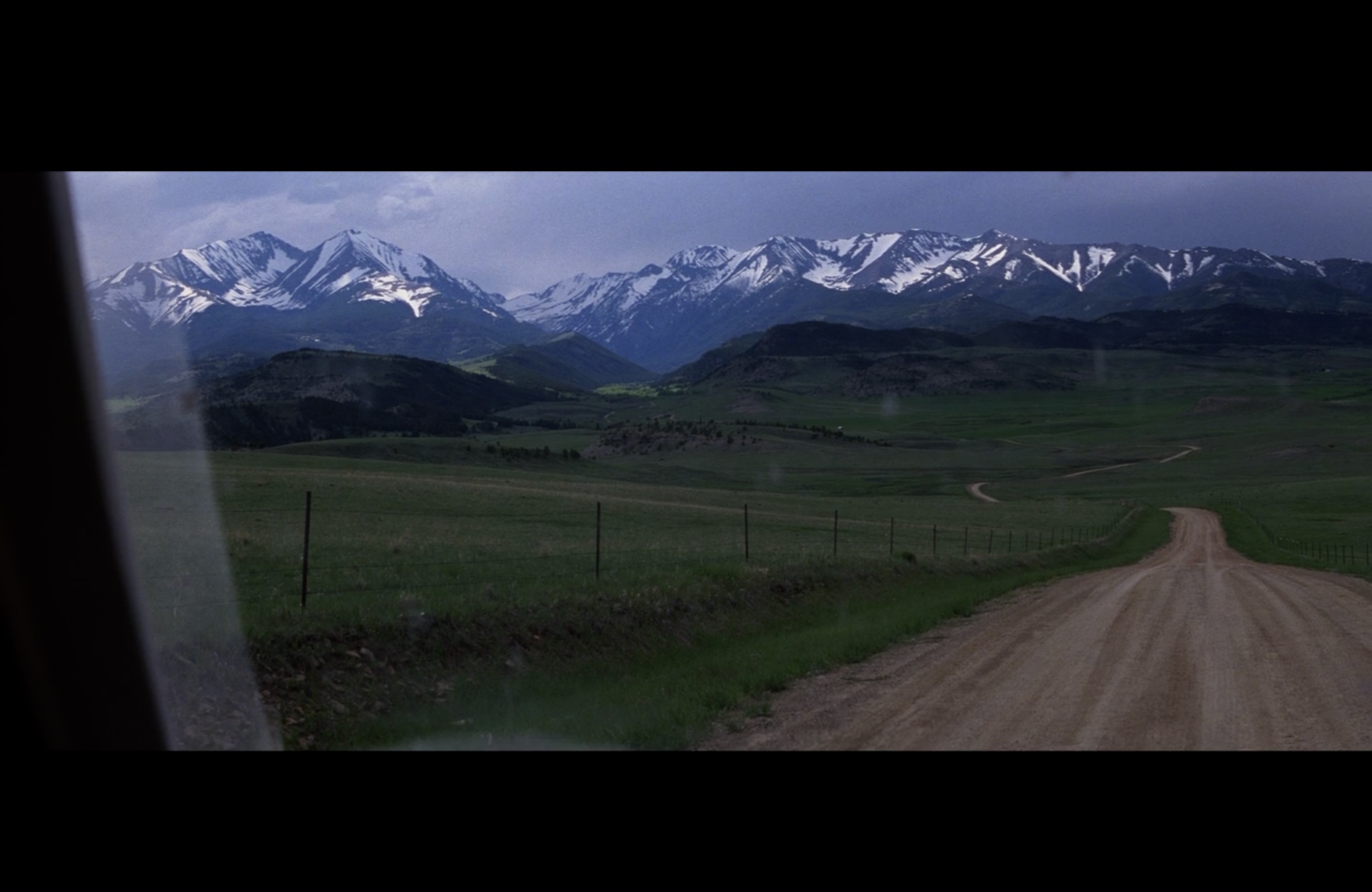 Op het lijstje van dingen om te bekijken staat de beroemde scene uit de Horse Whisperer op 1. Het is de scene waar ze met haar auto een dirt road op rijd en dan de besneeuwde toppen van de Crazy mountains voor het eerst ziet.