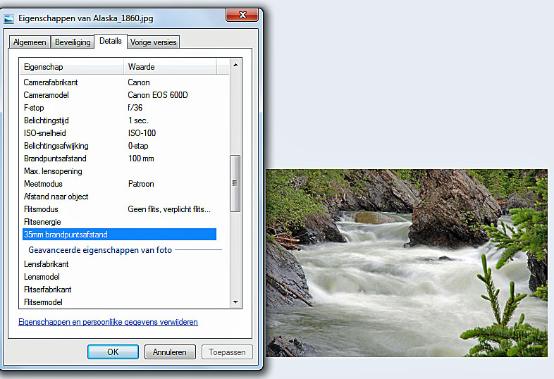 Ik heb een programmaatje op mijn computer waarmee ik de exif informatie van foto's kan aflezen door er met de muis op te gaan staan, zo kan ik zien met welke instellingen jij de foto gemaakt hebt.