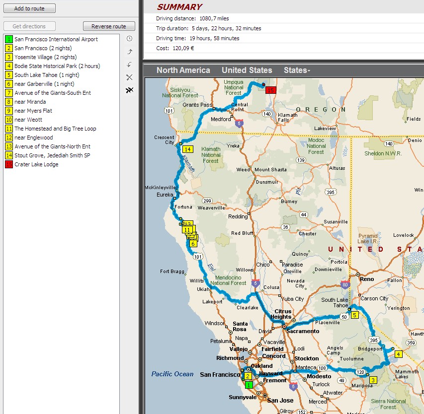De Californië kust hoeft niet voor mij, maar ik zou toch graag de Coast Redwoods zien. Ik ga momenteel even proberen om Yosemite er toch in te houden.