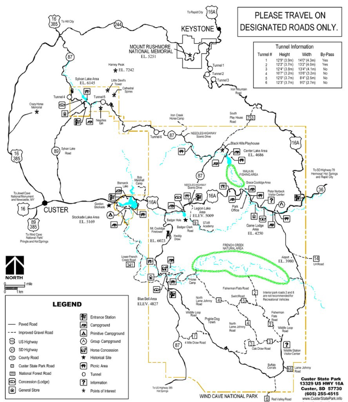 . Is met een C25 echt prima te doen. Heb zelfs van mensen gehoord dat ze er met een c30 doorheen gingen. Die foto die je hebt gezien is niet op de iron Mountain Road. Dat is waarschijnlijk bij tunnels 4, 5 of 6. Die zijn krapper. Zie bijgevoegd kaartje. Iron Mountain Road heeft tunnels 1,2 en 3. Google ook maar eens op "iron Mountain Road South Dakota". De afbeeldingen die je dan ziet geven een goed beeld. En je hebt ook alvast een voorproefje voor het zicht op mount Rushmore na de laatste tunnel.