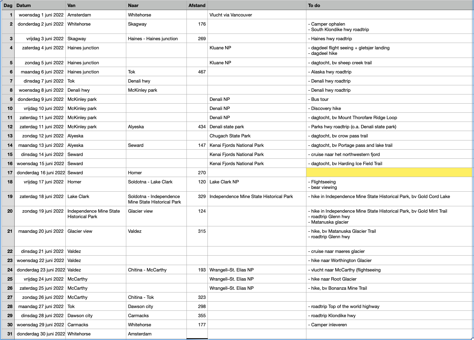 Dag 19 is ook een heel eind rijden zeker als je eerst nog van Lake Clark moet komen.
