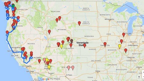 - het Starved Rock State Park is een goede tip, ik heb hem op mijn kaart geprikt. Voorlopig spaar ik speldenprikjes op mijn kaart om daar later één of meerdere routes uit te kunnen vormen, op deze manier: