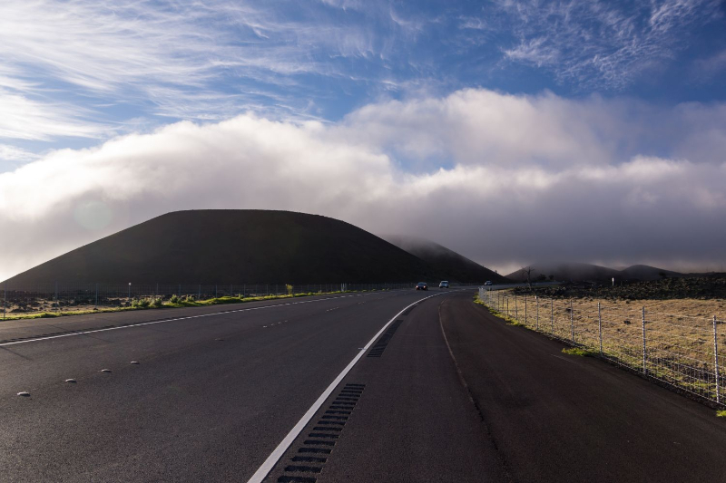 Veel uitzichten heb je niet op Saddle Road; wij vonden alleen het eerste stuk mooi (vanaf Hilo) tot aan de kruising naar Mauna Kea. Als je aan het eind van de middag die kant op gaat is het nog licht.