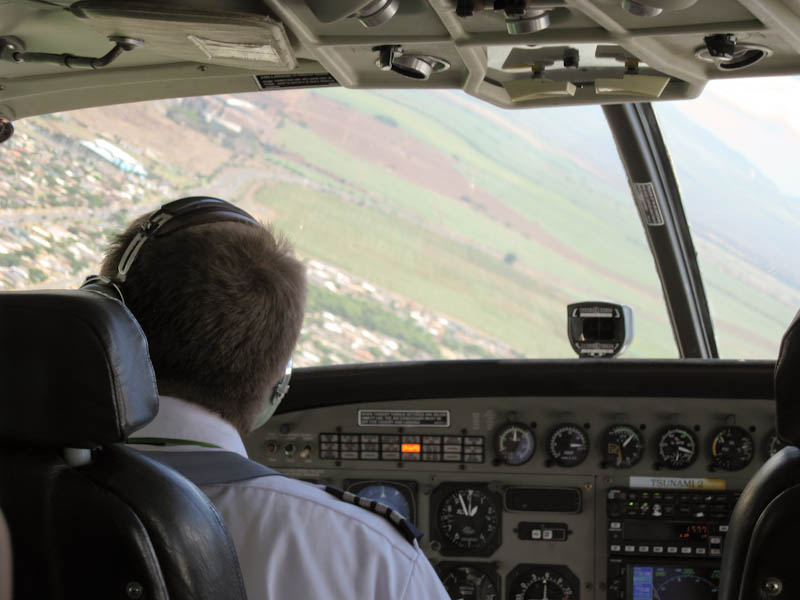 Vliegtuig is een Cessna Grand Caravan. Klein, lastig om naar je zetel te "kruipen", en het kan bumpy worden onderweg, wat ook wel een ervaring is. Je ziet de piloot ook al zijn handelingen uitvoeren want hij zit gewoon in dezelfde cabin als jijzelf, wat wel cool is