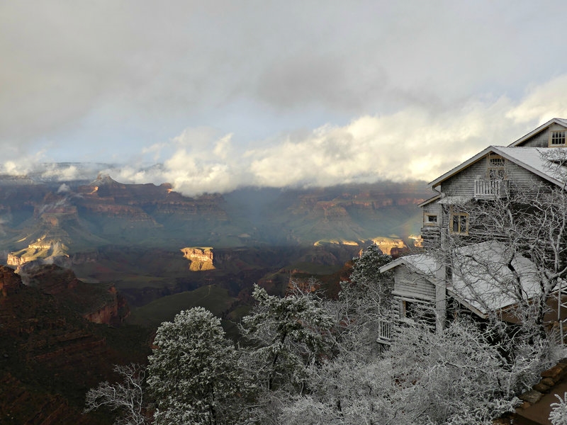 Kolb Studio na een sneeuwbui in Grand Canyon NP