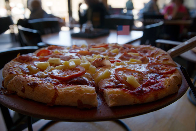 Glutenvrije pizza in restaurant "Where pizza is Art" in Sedona. En lekker dat ie was!