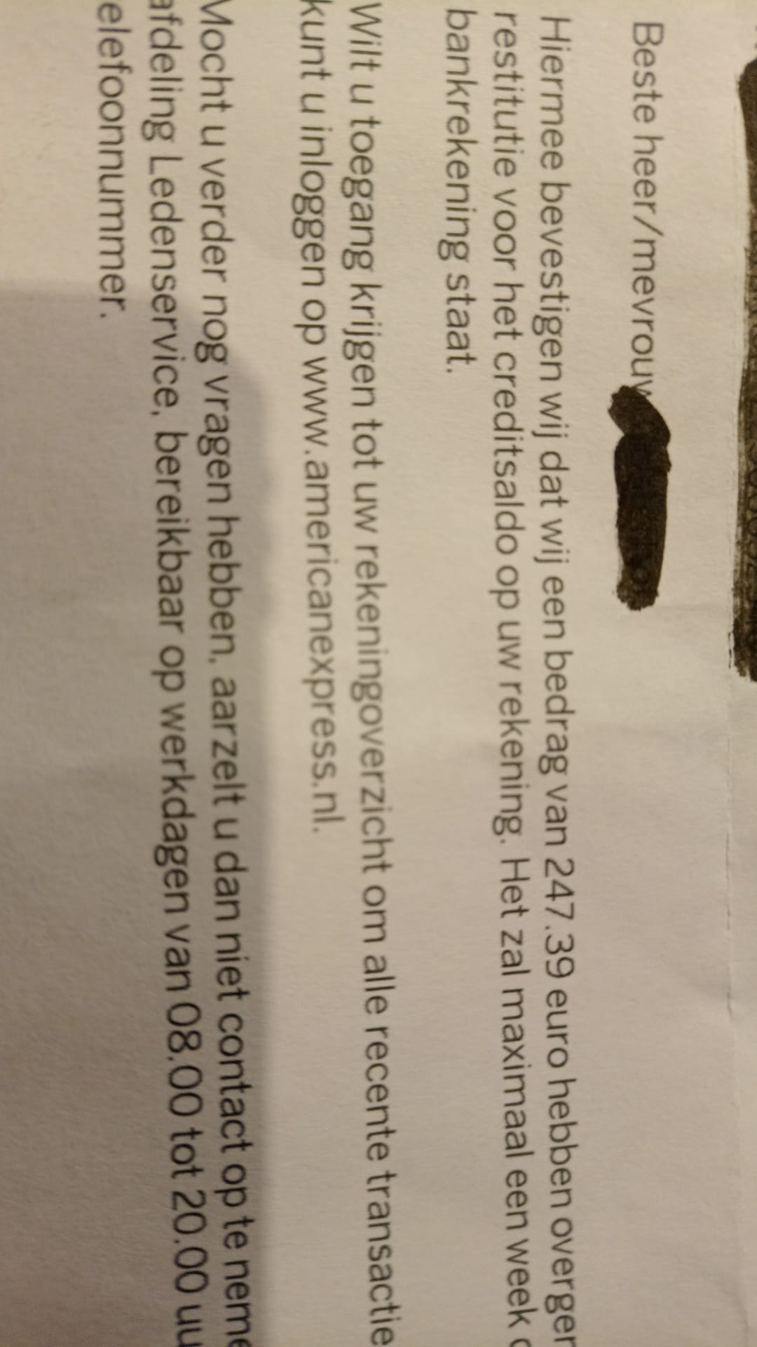 Ik had schade en belde via Amex met het bedrijf.