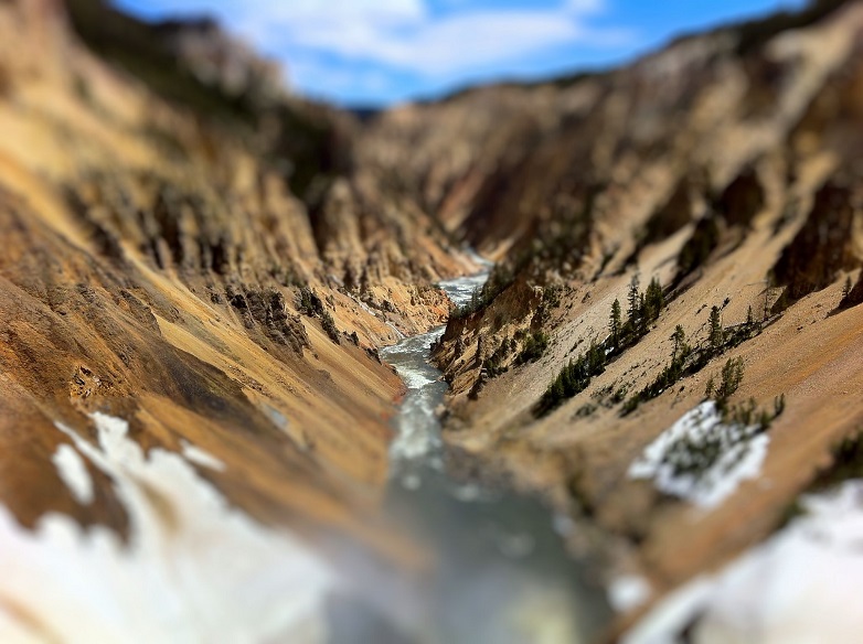 voorbeeldje grand canyon of yellowstone. Maar het is mooier met bv een dorpje of en groot gebied met een paar mensen in beeld.