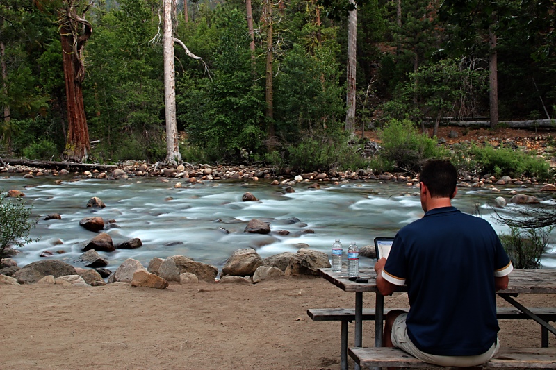 terwijl ik de blog aan het bijhouden was, experimenteerde mijn zoon wat bij Kings River (Kings Canyon NP)