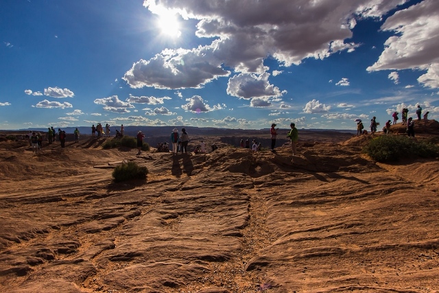 Ben ook geen voorstander van afrasteren hoor! Iedereen moet natuurlijk zelf weten welk risico ze nemen, maar je weet nooit welke manoeuvres mensen uithalen als het fout dreigt te gaan. Het was zo druk bij de Horseshoe Bend, zag het al gebeuren dat een of andere gek mij of m'n vriend mee de afgrond in zou trekken...