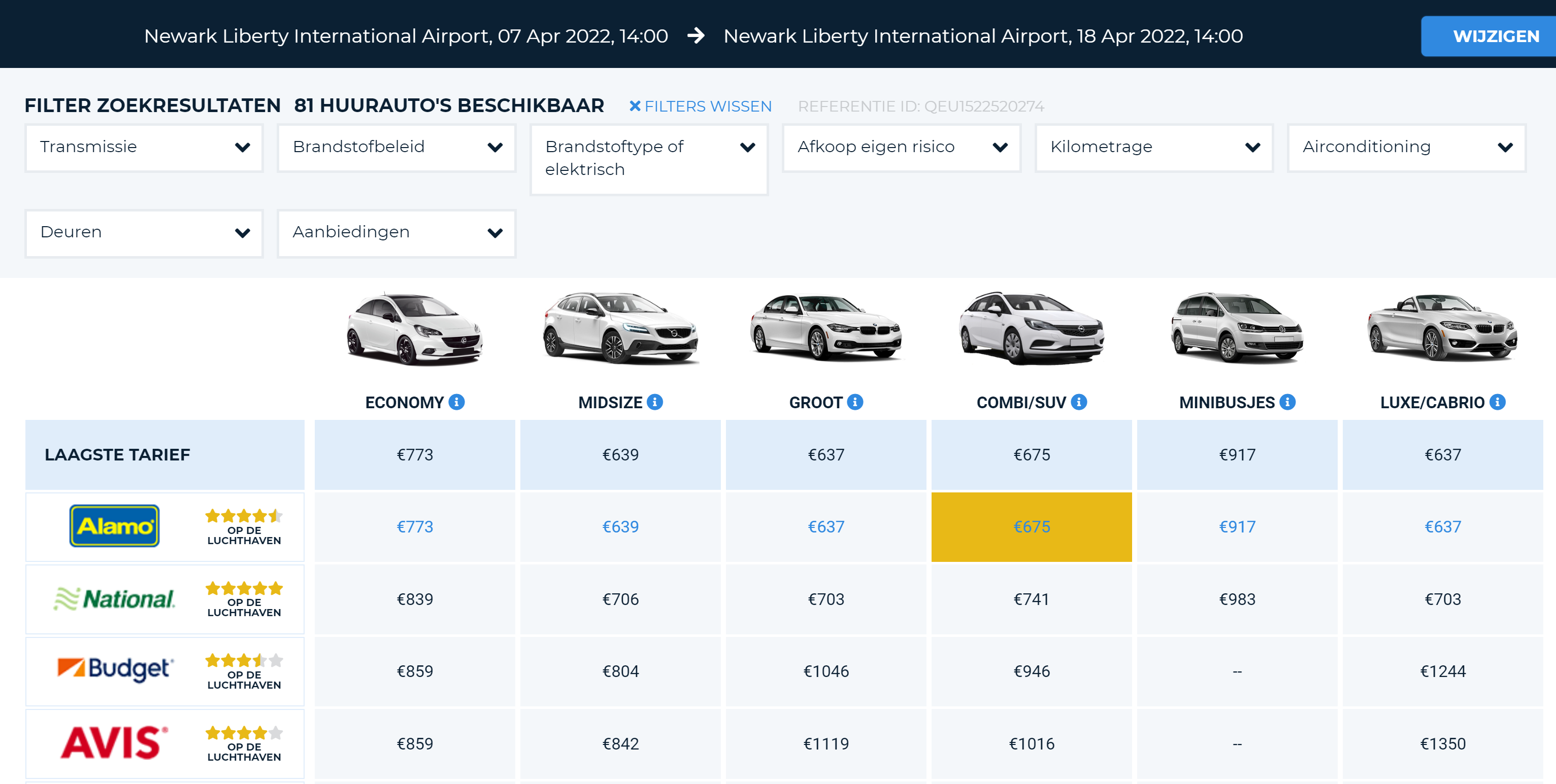 Re: Auto huren luchthaven NEWARK vanaf 7 april 2022.