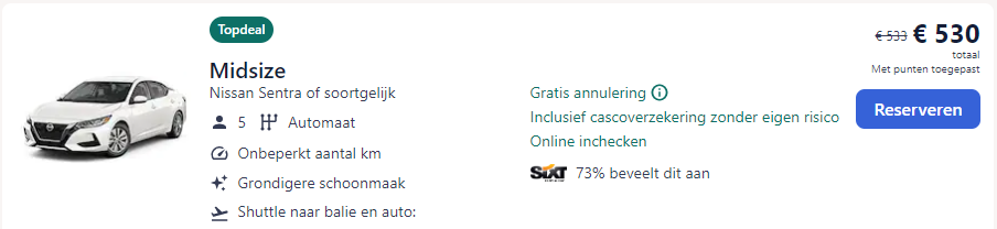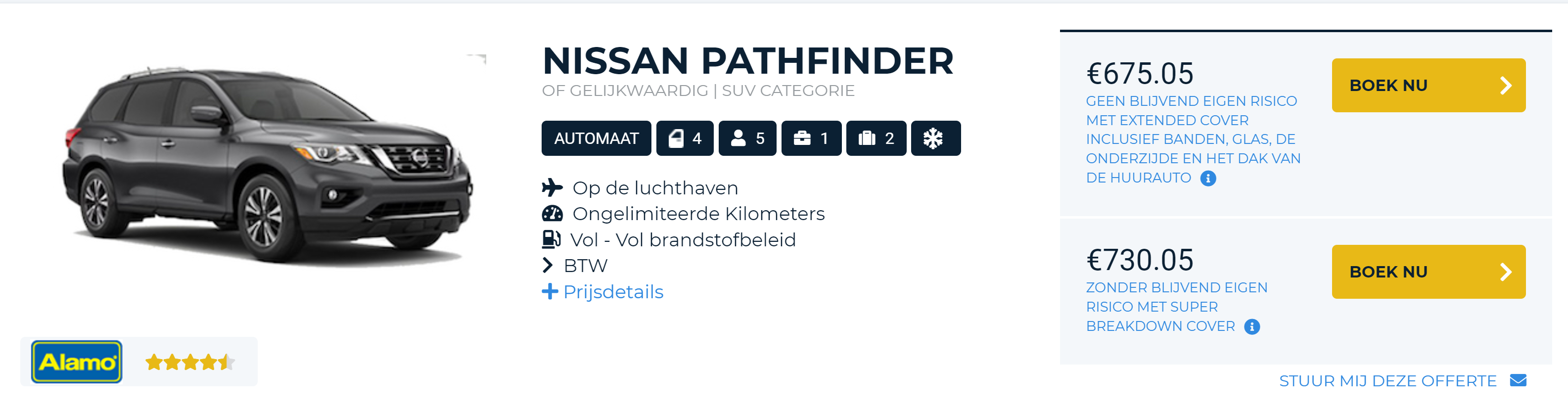 Als je je eerst aanmeld als lid krijg je iets betere prijzen. Ik kom dan op €675 voor een midsize SUV voor 7-18 april.