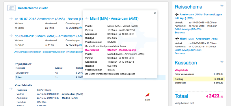 Ticket prijs is met annuleringsverzekering en boekingskosten komen we uit op een totaal van 2612 euro ( 4 personen)