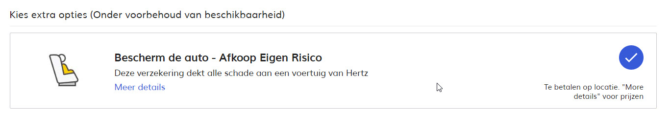 Bij Hertz zie ik (na het selecteren van een auto) het volgende staan.
