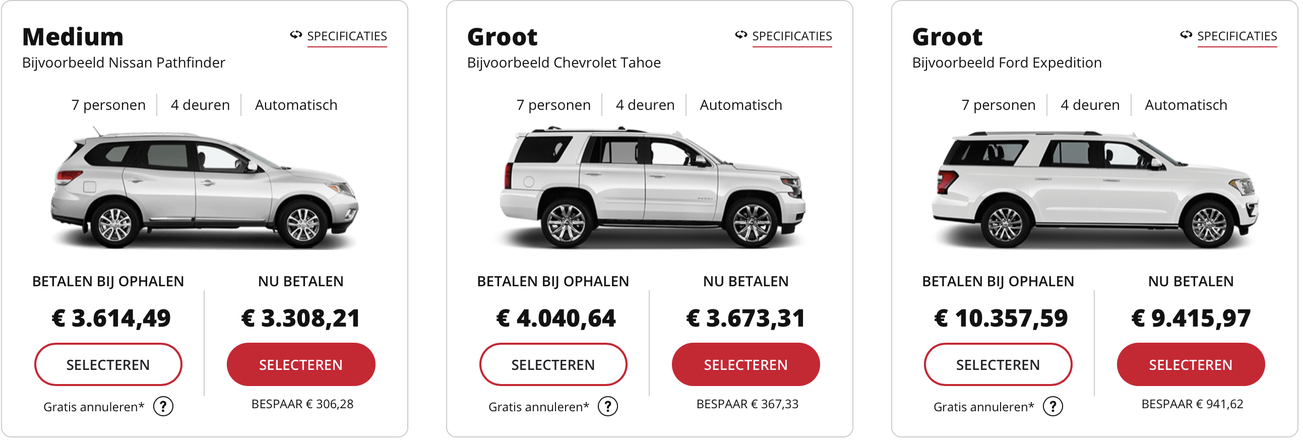 @Inges Heb je avis.be al geprobeerd met FB code? Ik betaal in juni voor 23 dagen met vertrek Lax en inleveren Las voor een SUV 952 euro.