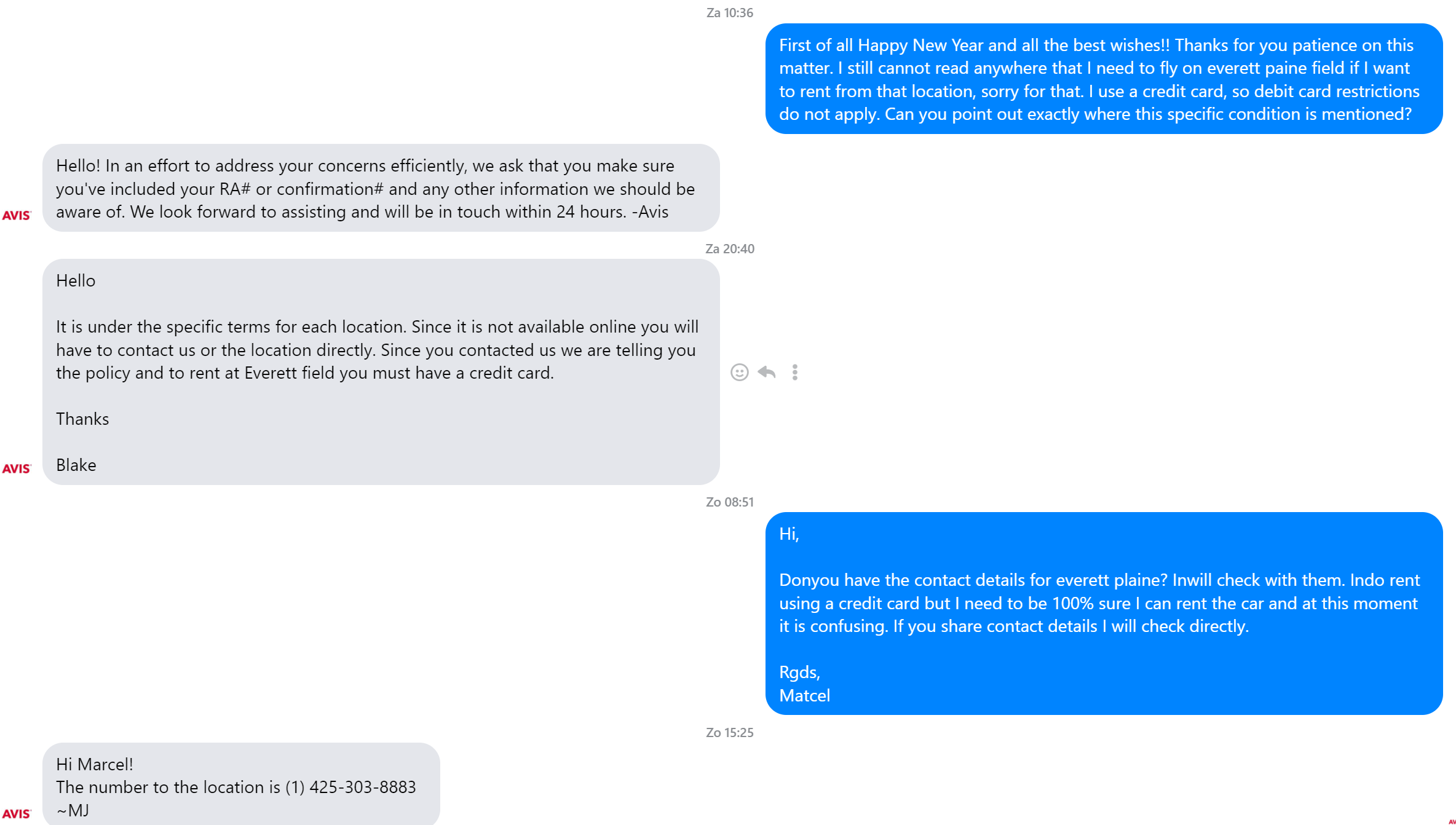 Bedoel je dat Hertz dezelfde bepalingen heeft voor Debit card (en dus aankomen op vliegveld waar je huurt) als bij Avis?