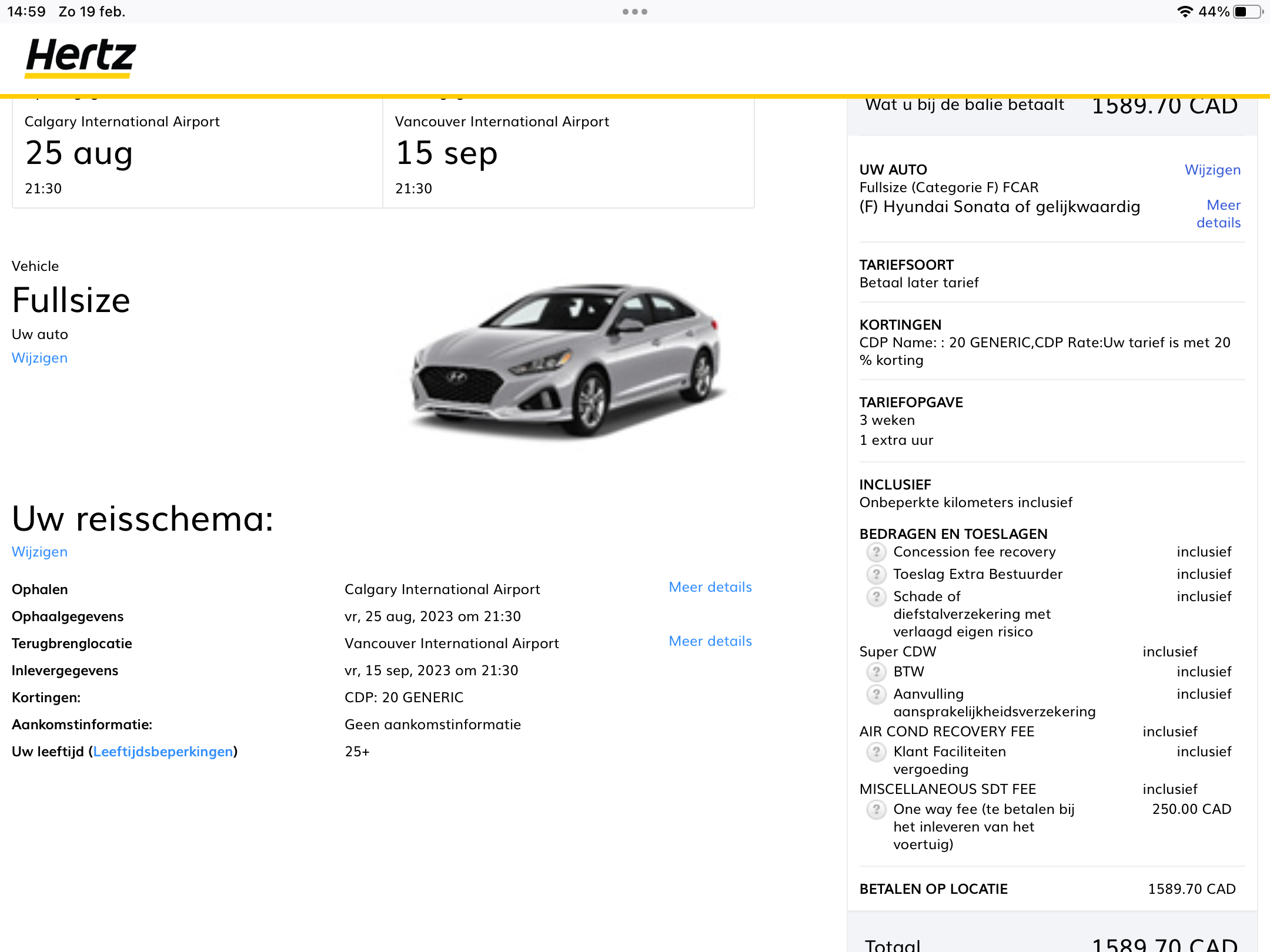 Wij maken een uitstapje naar Canada deze zomer. Ik heb een boeking gemaakt op Hertz.nl met 510K code. Het is bijna te mooi om waar te zijn…