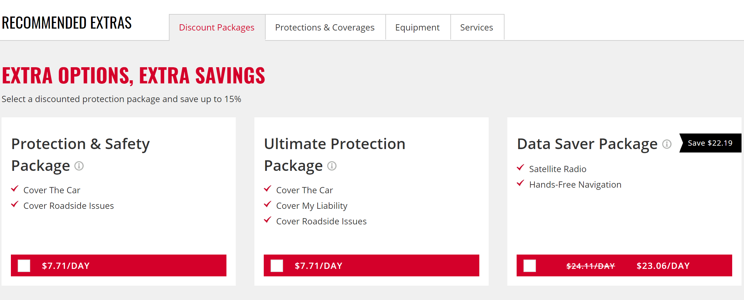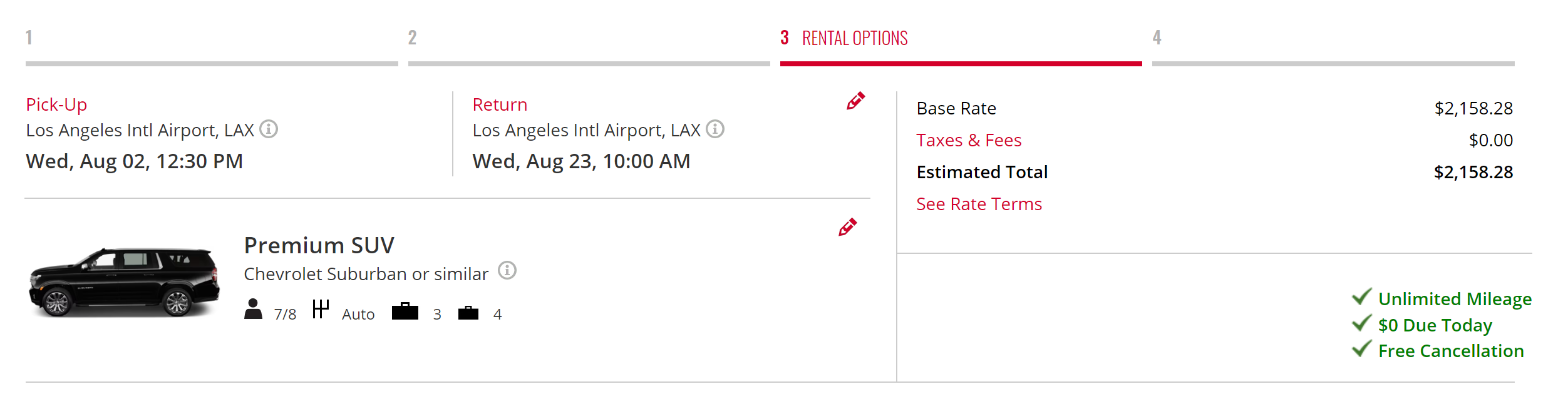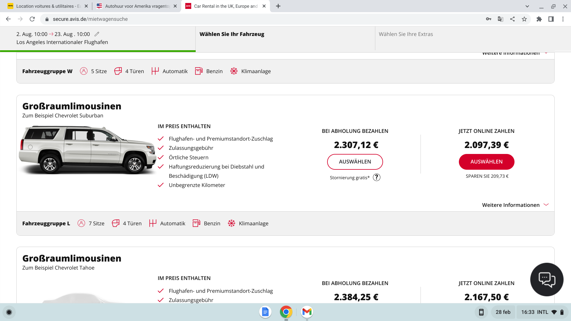 Nu kan ik bij Avis exact deze auto boeken voor $2158 waarbij er wel wat verzekering bij zit, maar niet alles is aangevinkt.