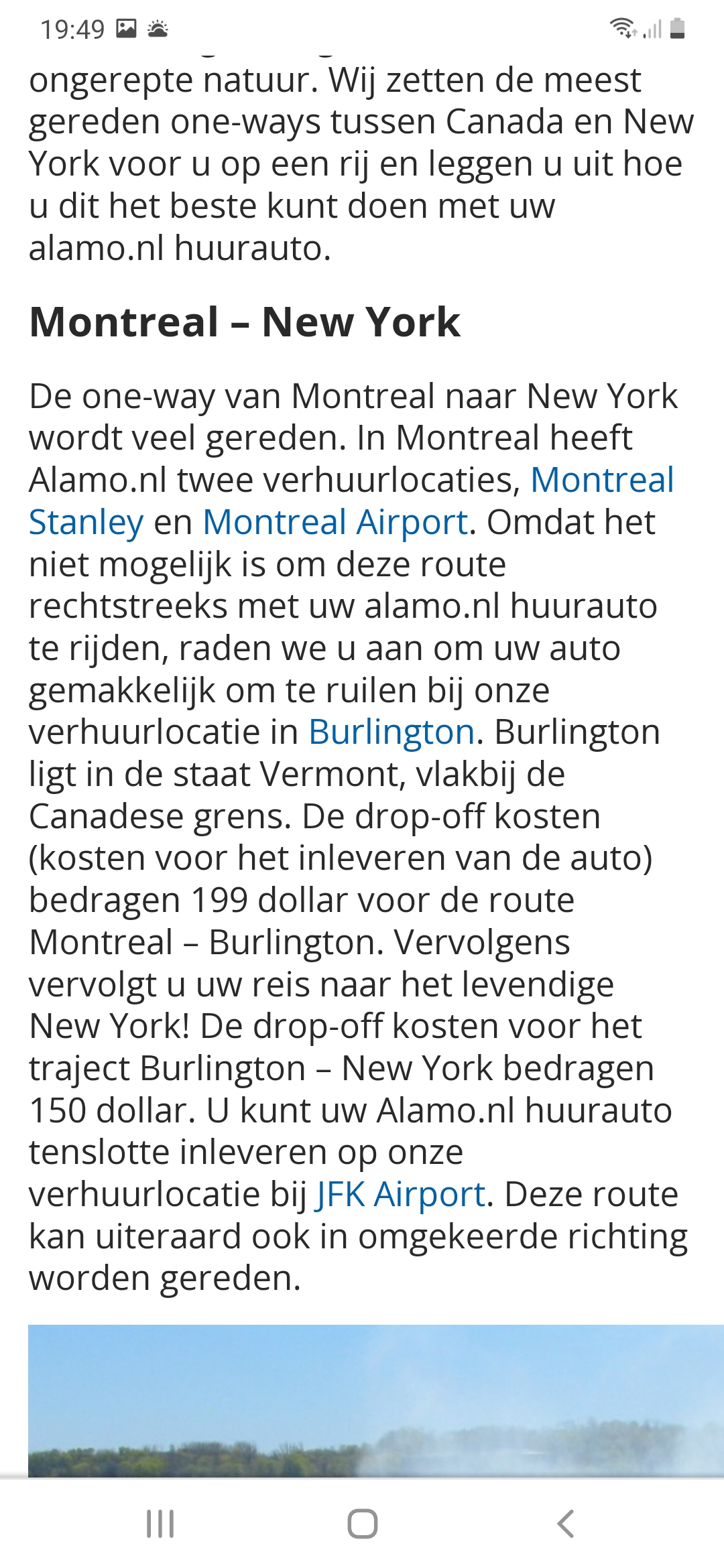 Wij vliegen eind september naar Montreal, vandaar zakken wij af naar New York. Ik loop echter tegen een probleem aan, huurauto. Heeft iemand dit al eens gedaan in Canada huren in in de Verenigde staten inleveren?