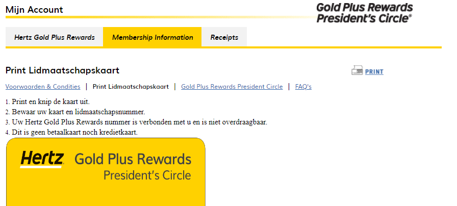Vraagje, hoe bewijzen jullie dat jullie President's Circle status zijn bij het ophalen van de huurauto?