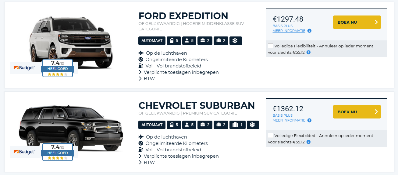 Sunnycars is gewoon duur, en zeker als je in Amerika wilt huren.