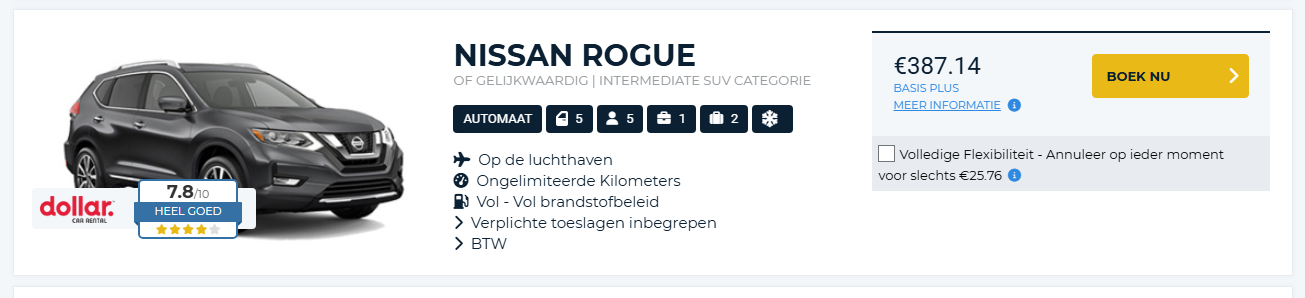 Mooie prijs! Maar wil liever de midsize SUV en vind het niet erg om wat meer te betalen, tot nu toe is uscarhire het meest voordelig. De vraag is alleen of daar dus alle verzekeringen bij zitten.. volgensmij wel, toch?