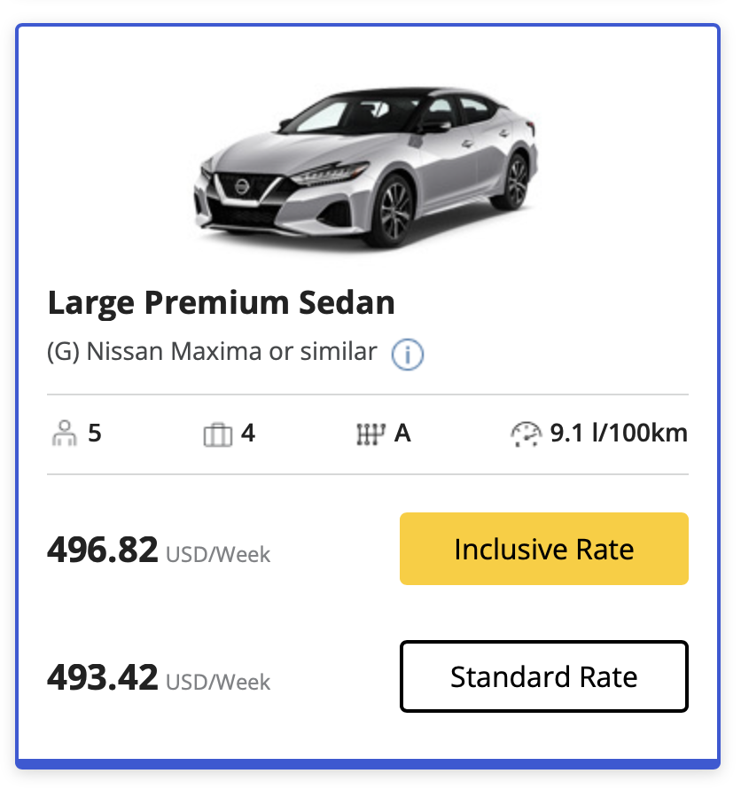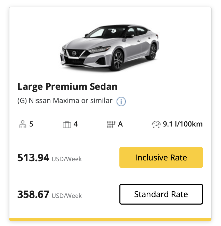 Wanneer ik nu nogmaals kijk zie ik 2 rates waarvan de Standard Rate veel duurder is en Inclusive Rate gewoon in de 500 dollar range zit, bij mijn eerste poging was er gewoon 1 rate en de Small SUV AWD is helemaal verdwenen.