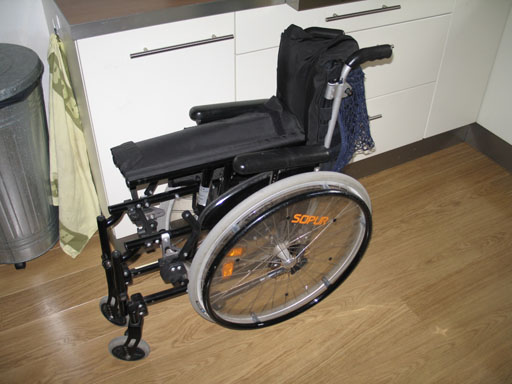 Hier een fotootje van de rolstoel in opgeklapte versie voor het idee. De wielen kunnen er evt. af. Dan is ie kleiner.