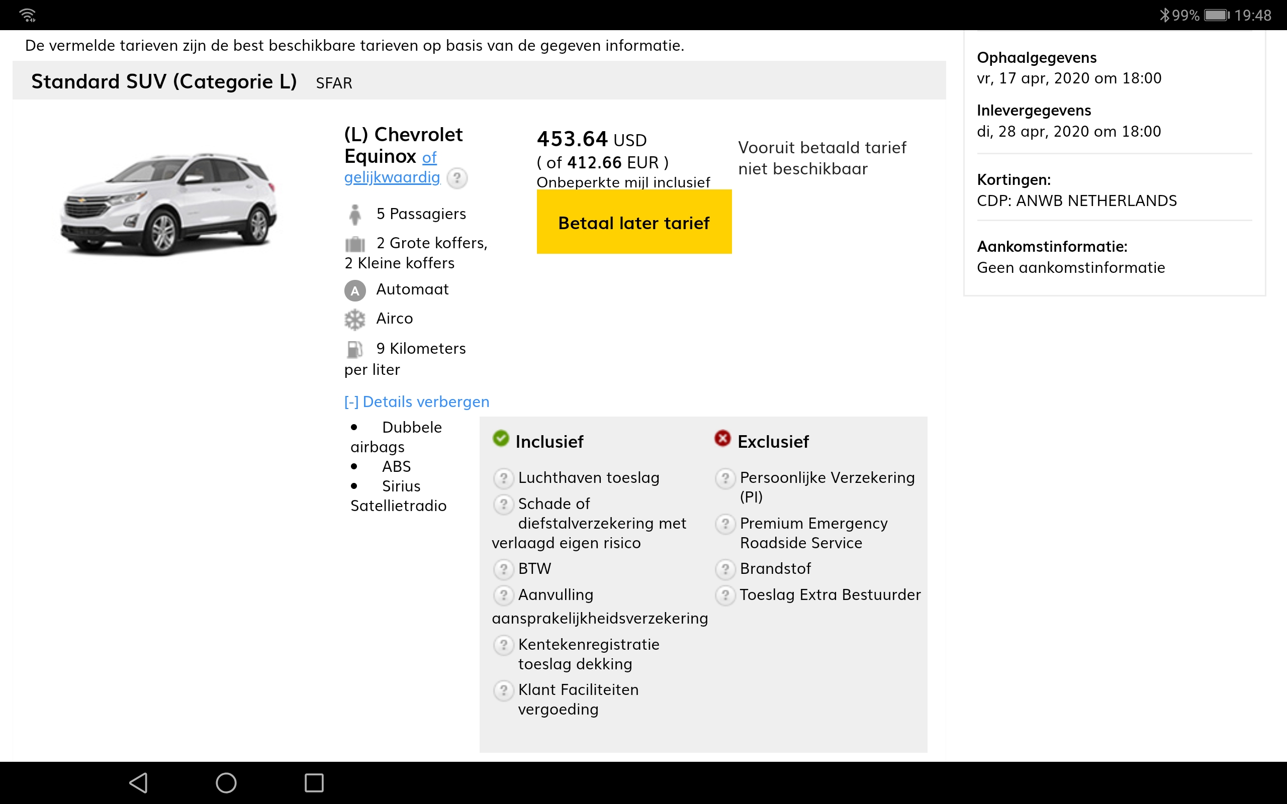 Met toepassing van de door jou gebruikte PC krijg ik als prijs voor de midsize suv 821.42 USD